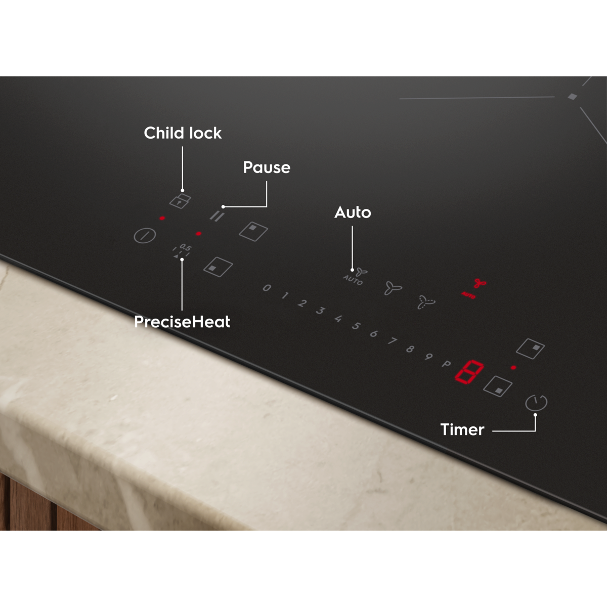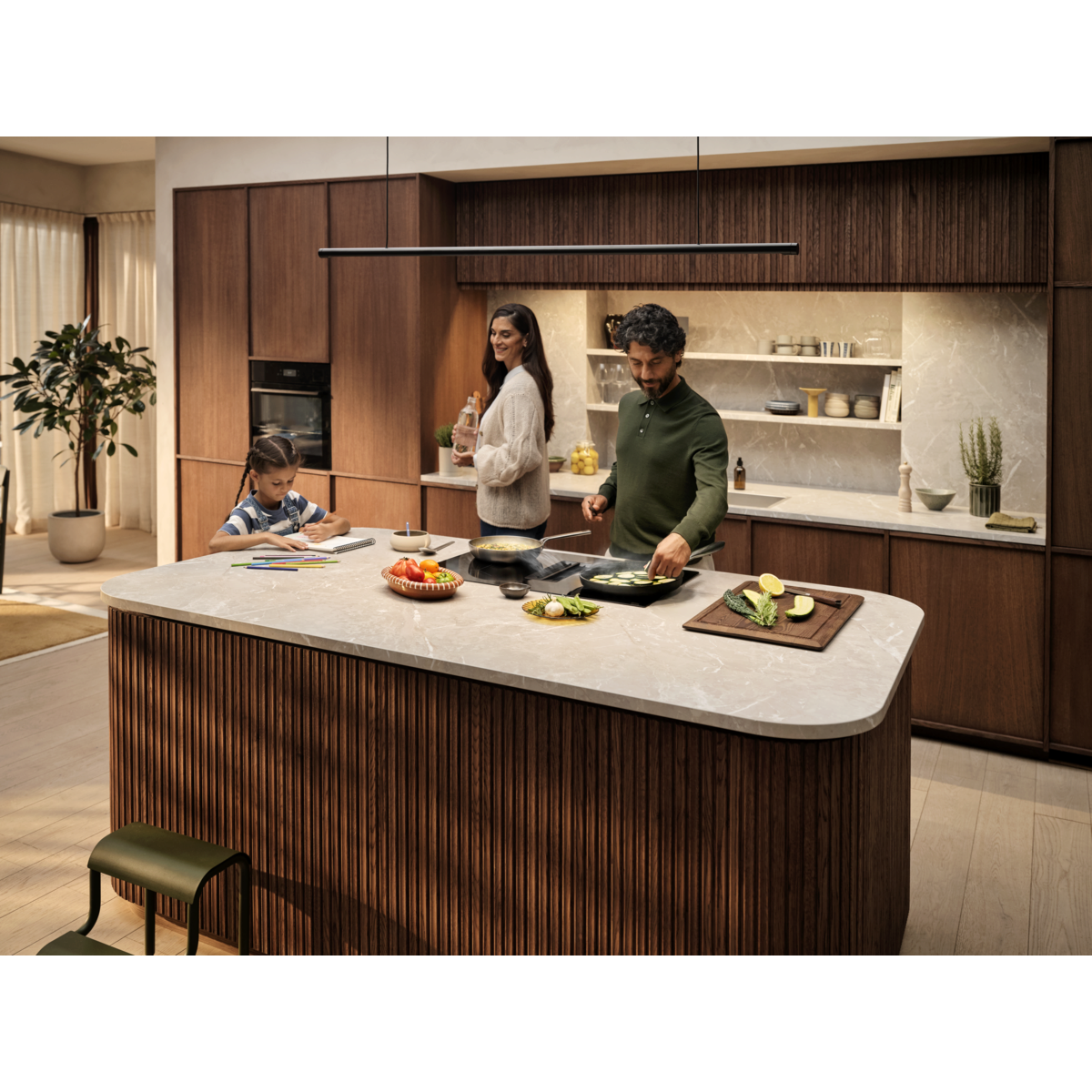 Възползвайте се от многобройните предимства на индукционен плот, който се побира в шкаф с ширина 60 см и има вграден абсорбатор за оптимален въздушен поток. Плотът с абсорбатор 600 Bridge има и функция Bridge, която Ви позволява да комбинирате 2 зони за готвене в една по-голяма зона.