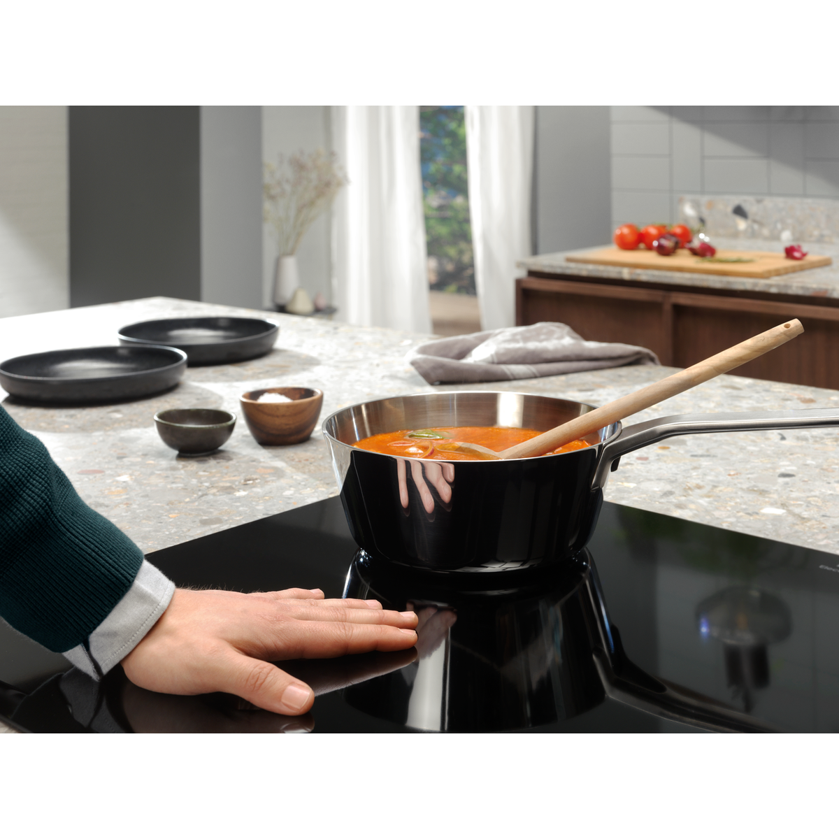 Системата Hob2Hood® безжично свързва плота за готвене към абсорбатора за автоматично аспириране.