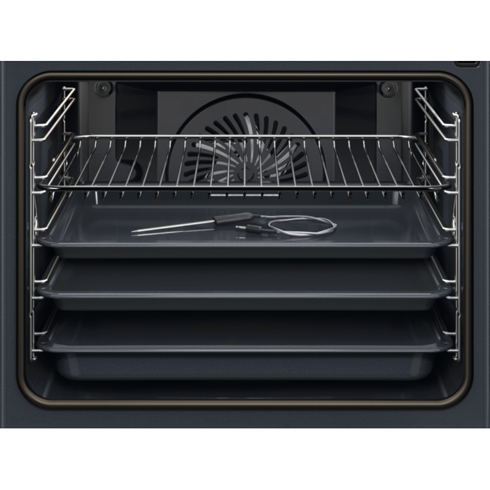 Очаквайте вкусни резултати с помощта на фурните от серия 800 с асистирано готвене със сензор за храна. Сензорът следи температурата в центъра на храната и ви позволява да изберете как искате да се сготви. Той се изключва, когато храната е достигнала желаното ниво на приготвяне. Сега вече можете да сервирате перфектните патешки гърди всеки път.