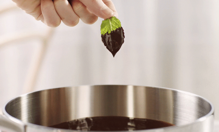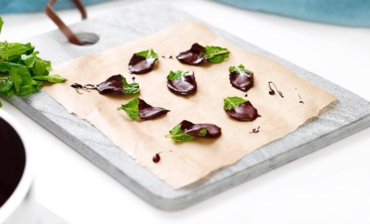 За освежаващ завършек след хранене, пречистете небцето си с този простичък деликатес - потопени в шоколад замразени ментови листа. Те са чудесни самостоятелно или за украса на други десерти, като сладоледи и торти. Разтопяването на шоколад при нежно загряване на индукционния плот е лесно, насладете се на гладък, професионален завършек, без да използвате сложни методи, като водна баня. Защо не опитате и с други листа за различно усещане? Препоръчваме босилек, салвия и цветчета лавандула.