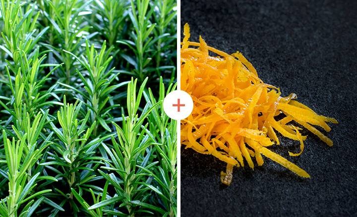 ![]() Настъргана портокалова кора и розмарин Настъргана портокалова кора и розмаринАроматният розмарин се съчетава със сладостта на портокаловите корички - различна и вкусна подправка за сьомга.